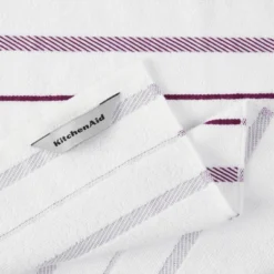 KITCHENAID Albany Kitchen Towel 4-Pack Set, Boysenberry Purple/White, 16″x26″