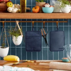 KITCHENAID Ribbed Soft Silicone Pot Holder 2-Pack Set, Ink Blue, 7″x9″