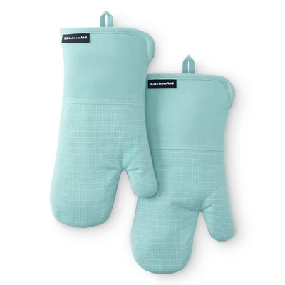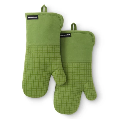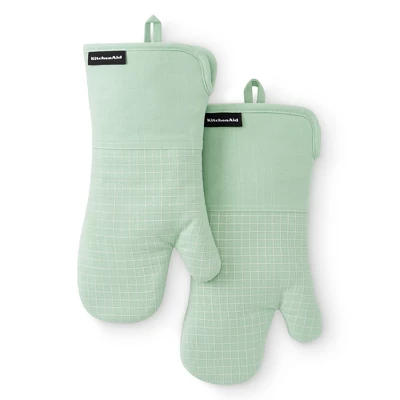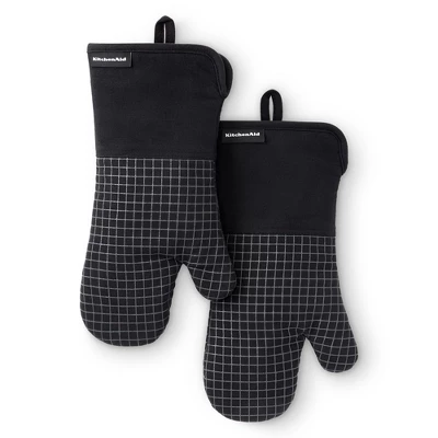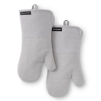 Protect your hands with the KitchenAid Gourmet Series Gridlines Oven Mitt 2-Pack Set. Heat resistant up to 600°F, these oven mitts feature slip-resistant silicone grips with a windowpane grid design, extra-thick padding for added protection, and a 100% cotton exterior with polyester lining. Designed for convenience, they include magnetic cuffs and hanging loops for easy storage and are machine washable for hassle-free cleaning. Stylish and functional, they’re perfect for any kitchen task. Coordinate with KitchenAid kitchen linens and tools for a cohesive look.